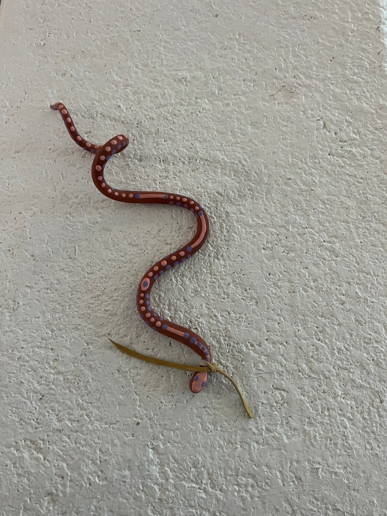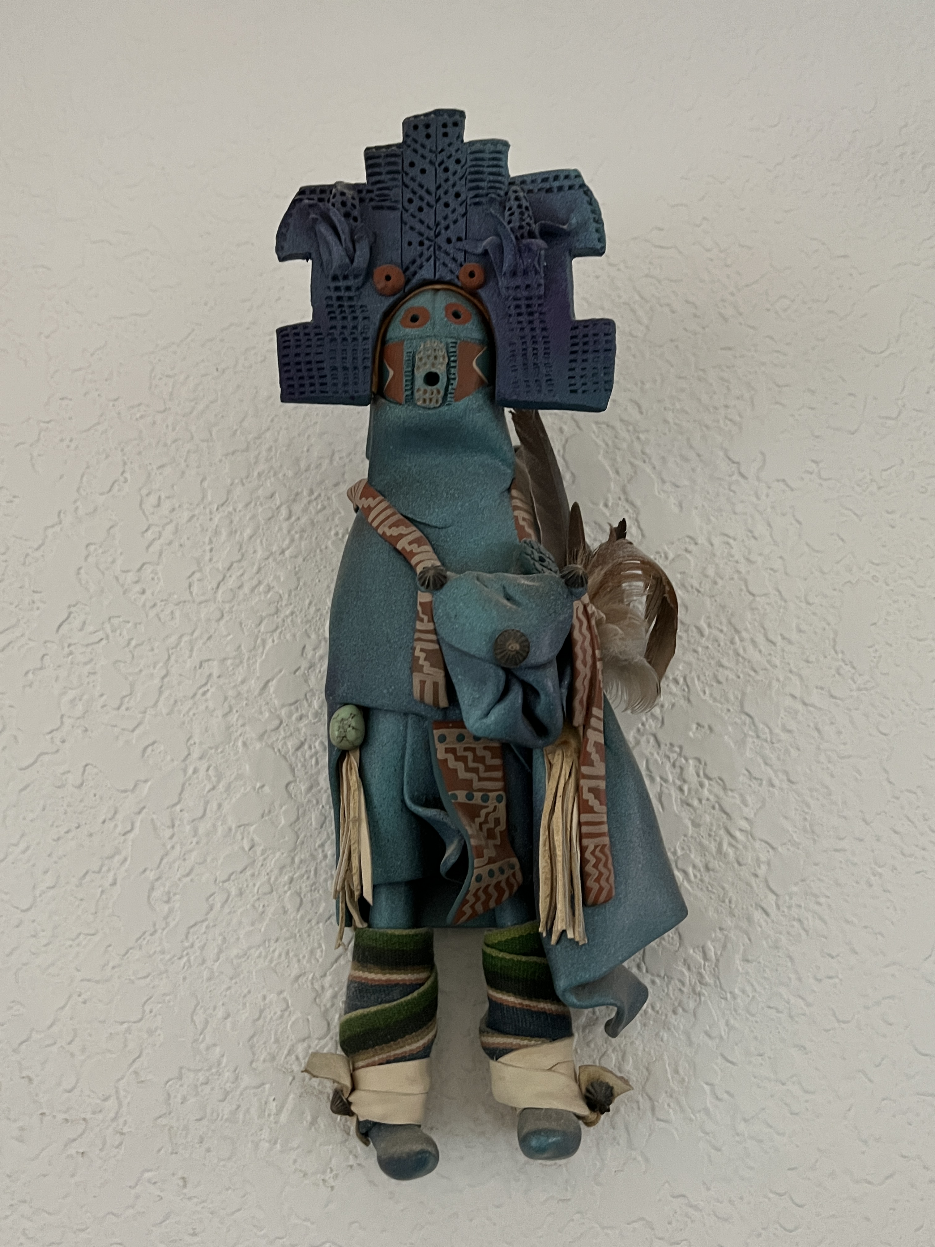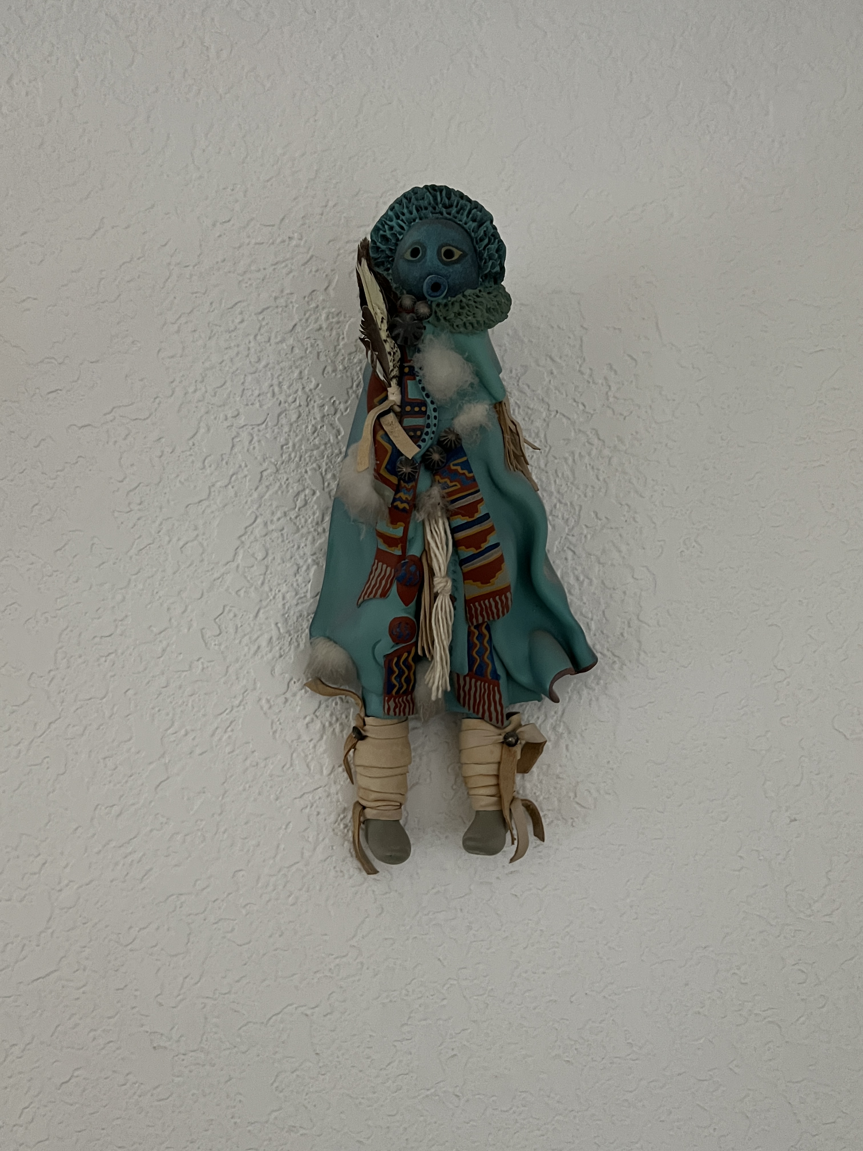 Her clay sculptures are expressions of her Navajo heritage and feature cultural mythology. Renate’s collection is comprised of the Turquoise Lady and seven smaller clay sculptures featuring deities as well as one ceremonial clay pouch to carry fetishes and whimsical clay snakes. All clay sculptures are in pristine condition. Additionally, Renate has a copy of the Beyond Tradition book with the artist’s signature.